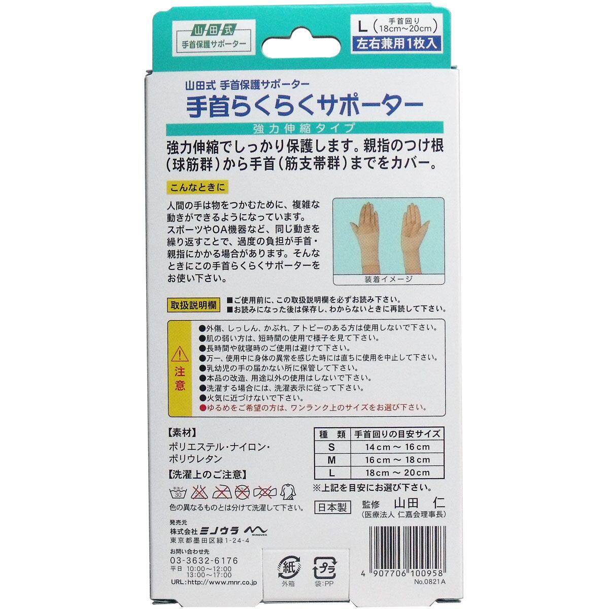 手首保護サポーター 手首らくらくサポーター Lサイズ 左右兼用1枚入