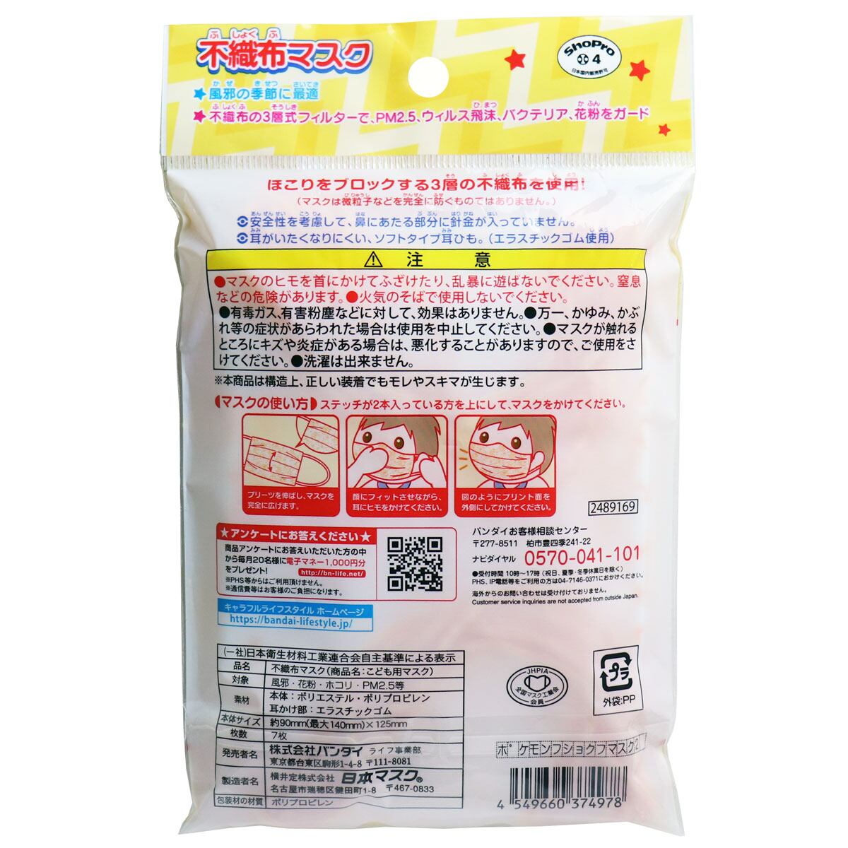 「ポケットモンスター」がデザインされた、衛生的な使い切りマスク7枚入です。
