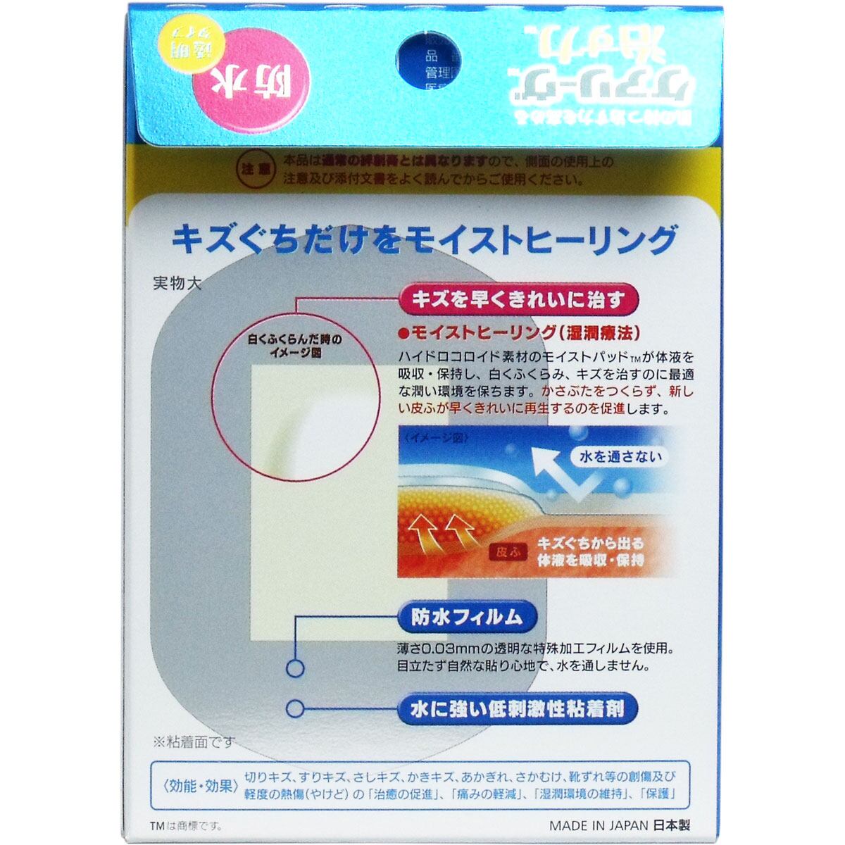 ハイドロコロイドという特殊素材を使った「モイストパッドTM」でキズぐちをピタッと密閉し、キズぐちから出る体液をパッドが吸収、保持。キズを治すのに適した潤った環境をつくるので、皮ふが早くきれいに再生するのを促します。
