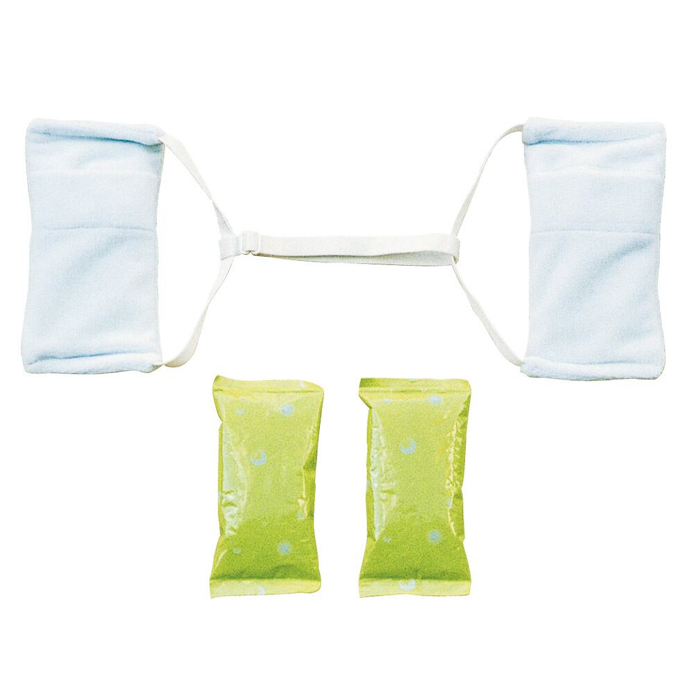 2.下着やパジャマを着た小児の腕を両サイドのゴムより通し、ジェル袋を脇下につけます。