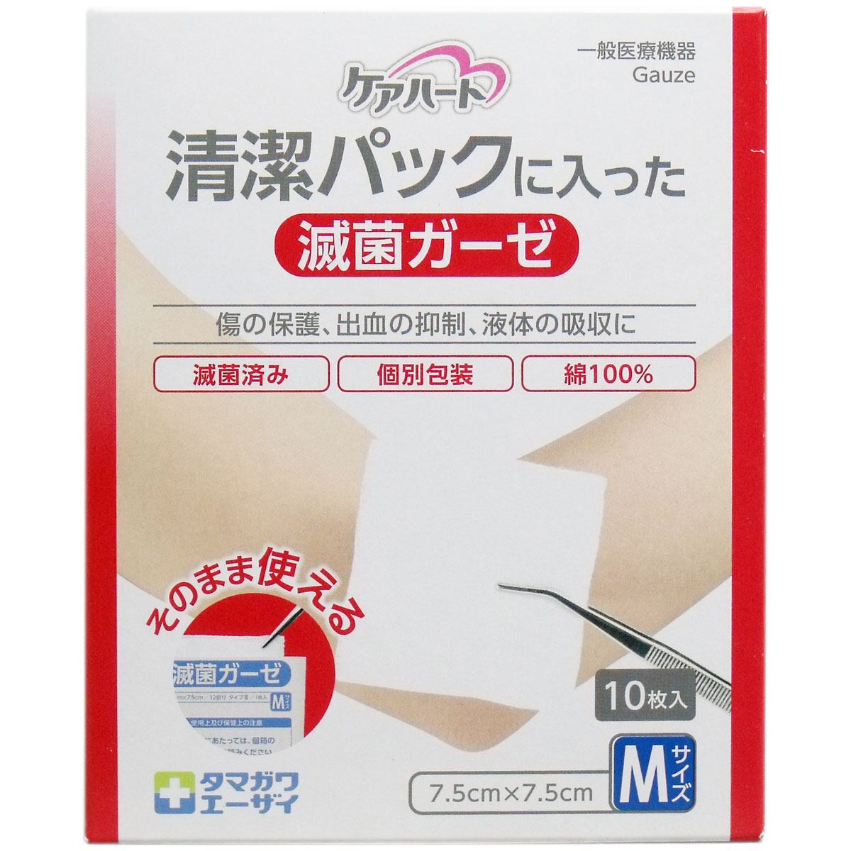 ケアハート 清潔パックに入った滅菌ガーゼ Mサイズ 10枚入