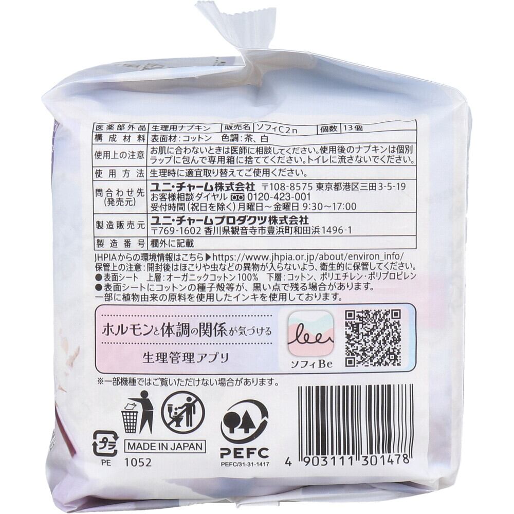 ソフィ はだおもいオーガニックコットン100% 特に多い昼用 羽つき 26cm 13個入