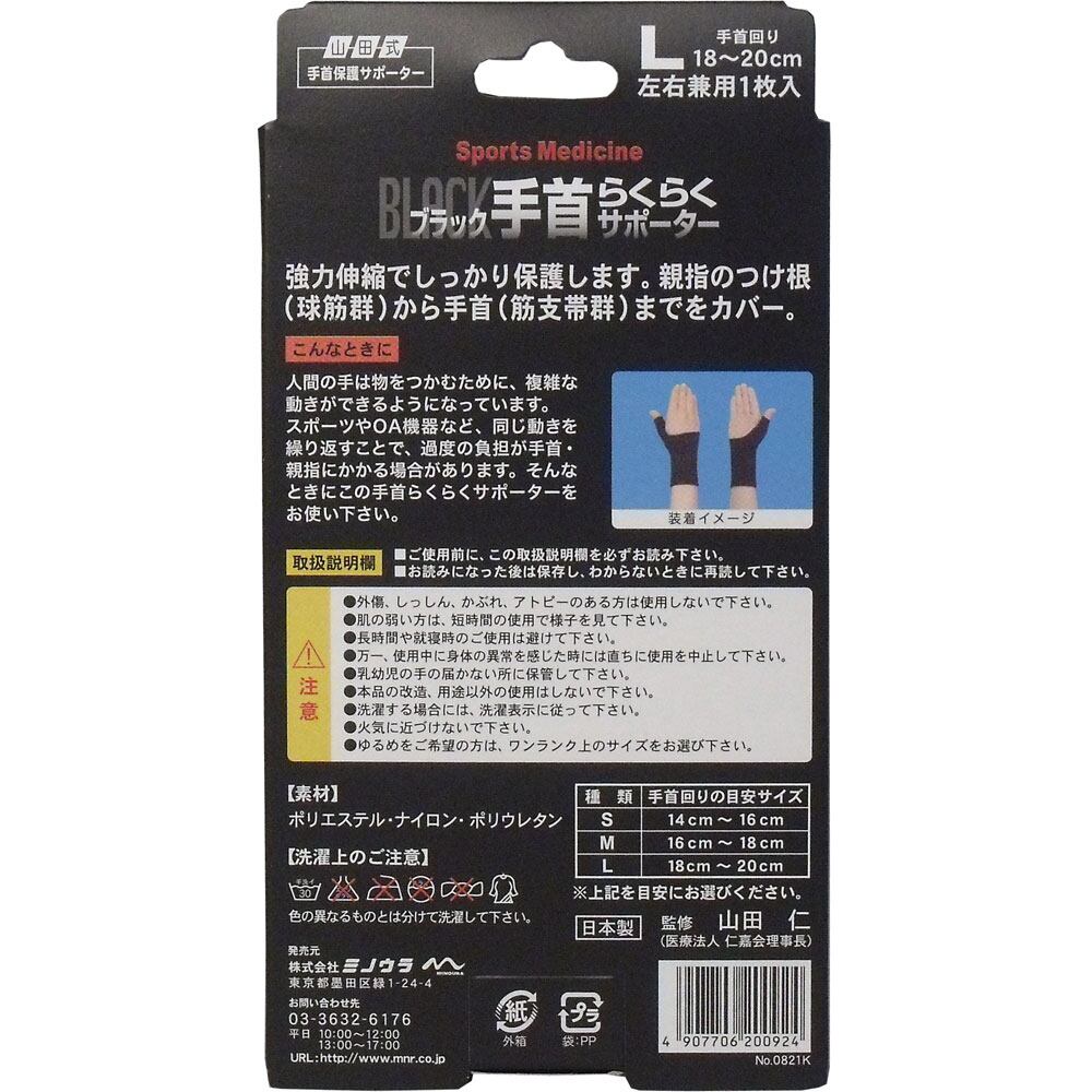 山田式手首保護サポーター 手首らくらくサポーター ブラック Lサイズ 1枚入