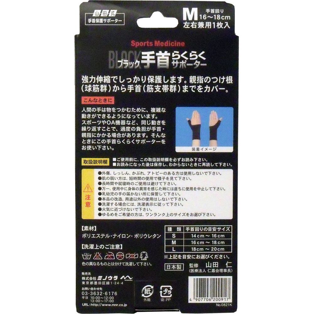 山田式手首保護サポーター 手首らくらくサポーター ブラック Mサイズ 1枚入