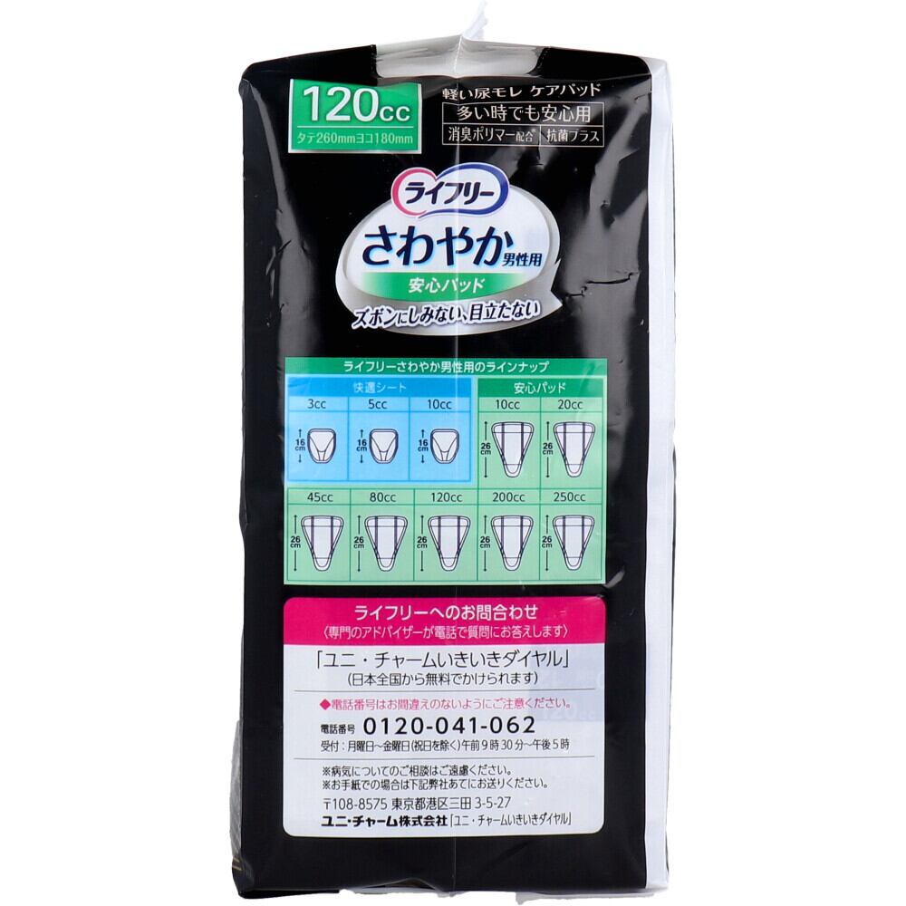 ライフリー さわやかうす型パッド 男性用 120cc 多い時でも安心用 16枚入
