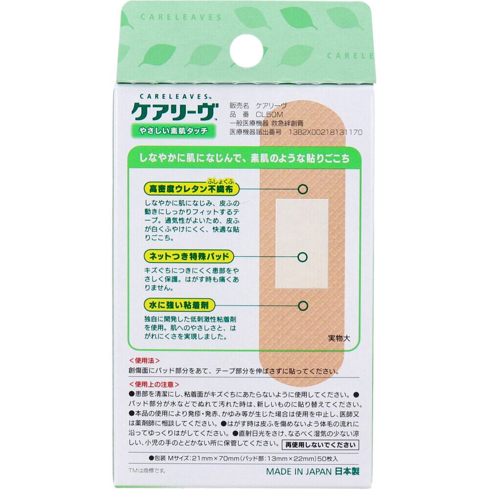 「やわらか素材の高密度ウレタン不織布」「キズぐちにやさしいパッド」「水に強い粘着剤」採用、やさしい素肌タイプの救急絆創膏です。