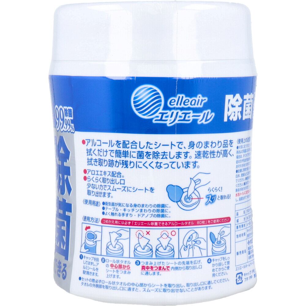 エリエール 除菌できるアルコールタオル アロエエキス入 本体 100枚入