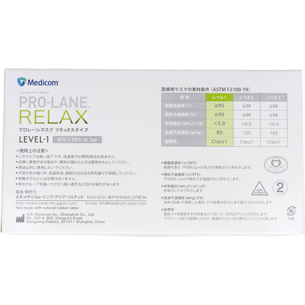 BFE≧98%、PFE≧98%(0.1μm)、ΔP<4.0