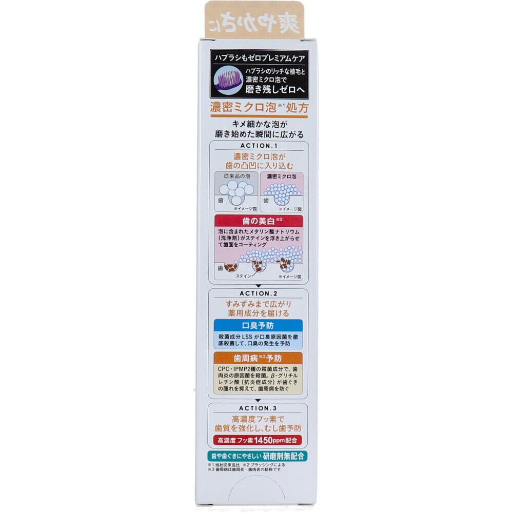 湿潤剤:濃グリセリン/溶剤:精製水/発泡剤:2-アルキル-N-カルボキシメチル-N-ヒドロキシエチルイミダゾリニウムベタイン、ラウリル硫酸ナトリウム/増粘剤:無水ケイ酸/粘結剤:キサンタンガム/ph調整剤:クエン酸ナトリウム、クエン酸/甘味剤:キシリトール、サッカリンナトリウム/薬用成分:ラウロイルサルコシンナトリウム(LSS)、フッ化ナトリウム(フッ素)、イソプロピルメチルフェノール(IPMP)、塩化セチルピリジニウム(CPC)、β-グリチルレチン酸/可溶剤:ポリオキシエチレン硬化ヒマシ油/洗浄剤:メタリン酸ナトリウム/香味剤:香料(シトラスタイプ)/清涼剤:l-メントール/着色剤:黄色203号