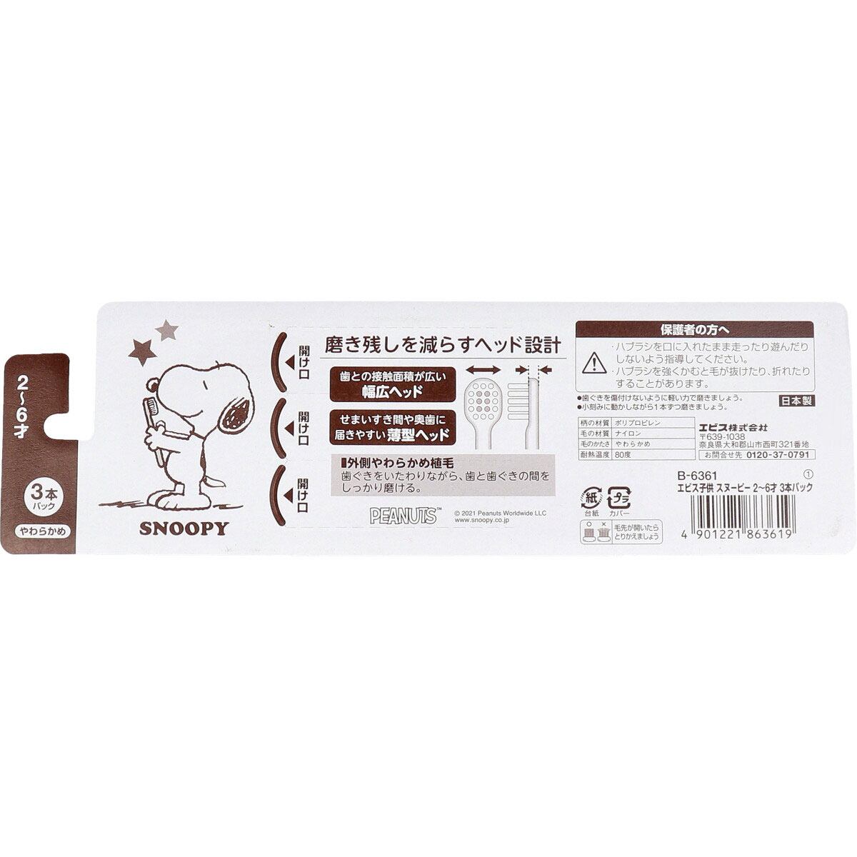 エビス子供 スヌーピー ハブラシ 2-6才 やわらかめ 3本パック B-6361