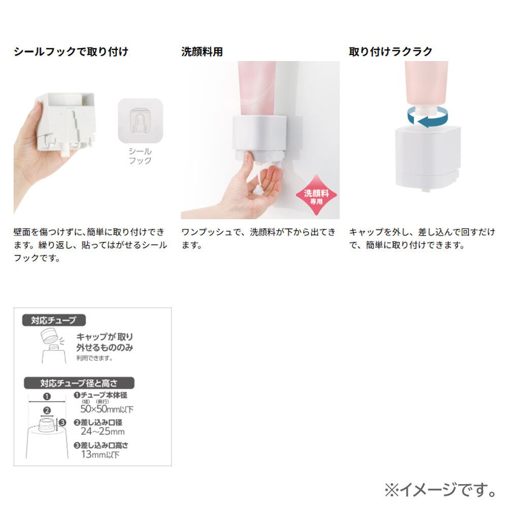 ・本体にキャップを外したチューブを差し込み、本体をシールフックに取り付けてください。