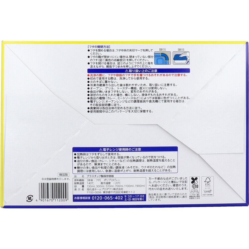 正方形:130mL×2、長方形:300mL×1、長方形:510mL×1、正方形:700mL×1、正方形:1100mL×1、長方形:1900mL×1