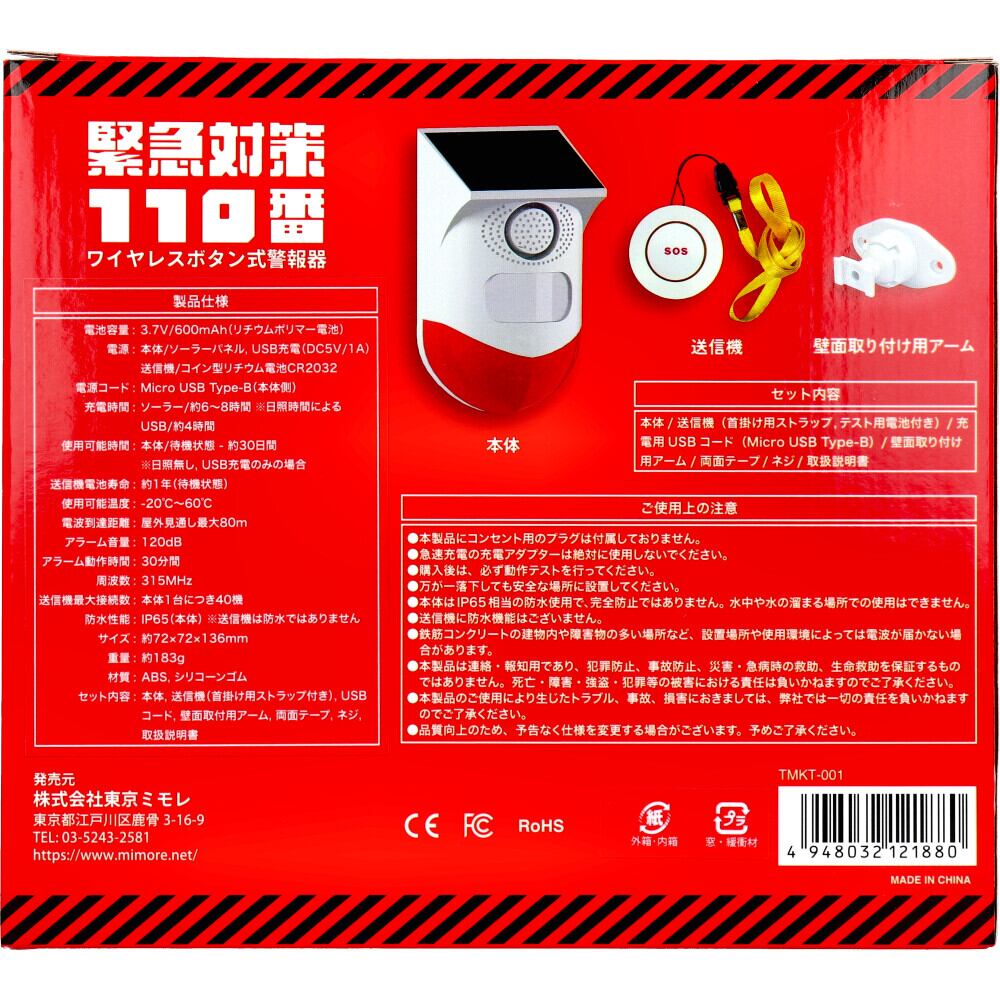 緊急対策110番 ワイヤレスボタン式警報器 1セット