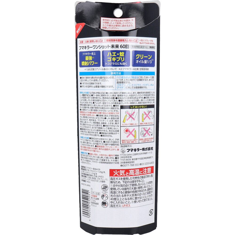 ハエ成虫および蚊成虫に対しては6〜12畳につき上方に向けて1回噴射するか、または直接噴射する。