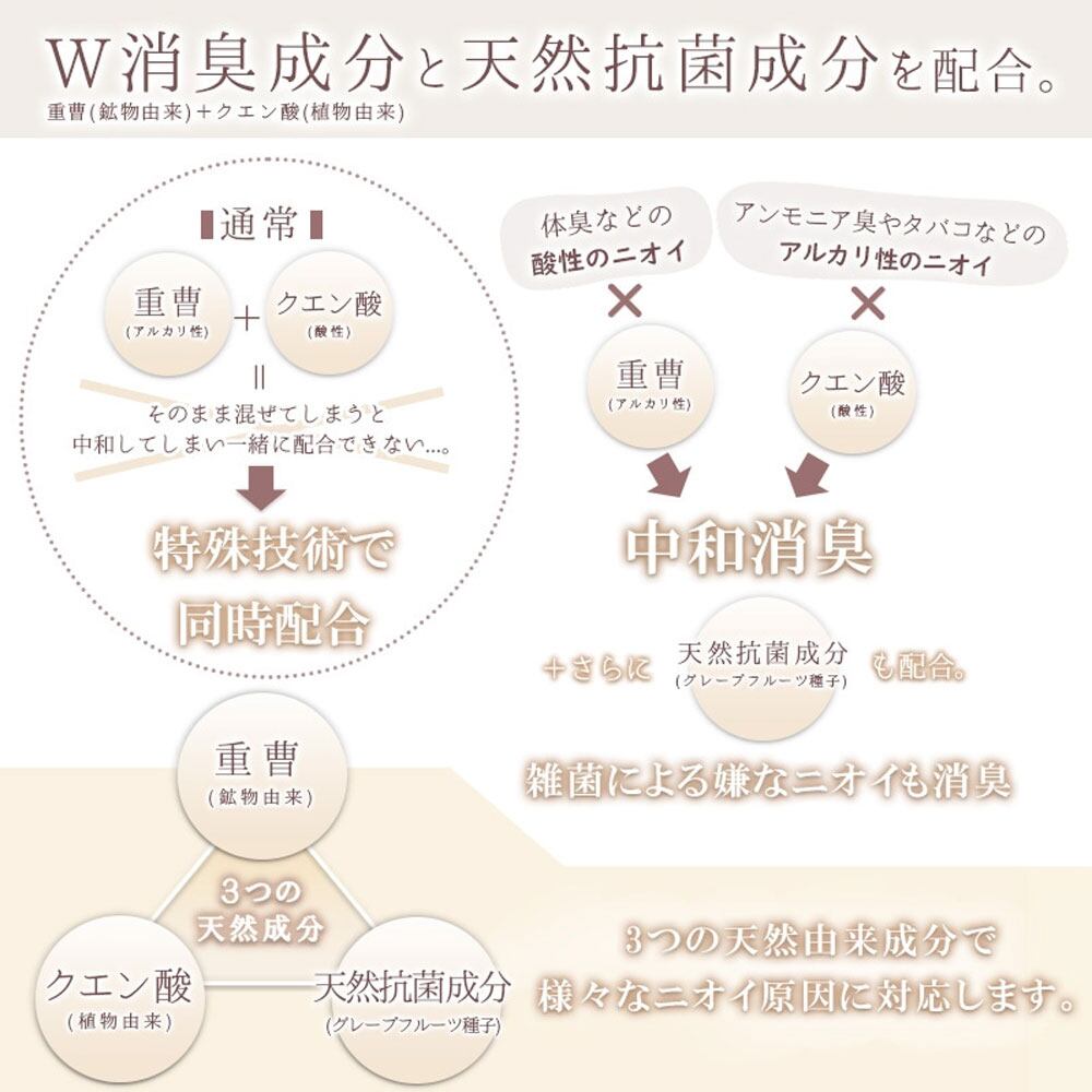 さらにグレープフルーツ種子から抽出した天然抗菌成分で雑菌によるイヤなニオイも消臭します。