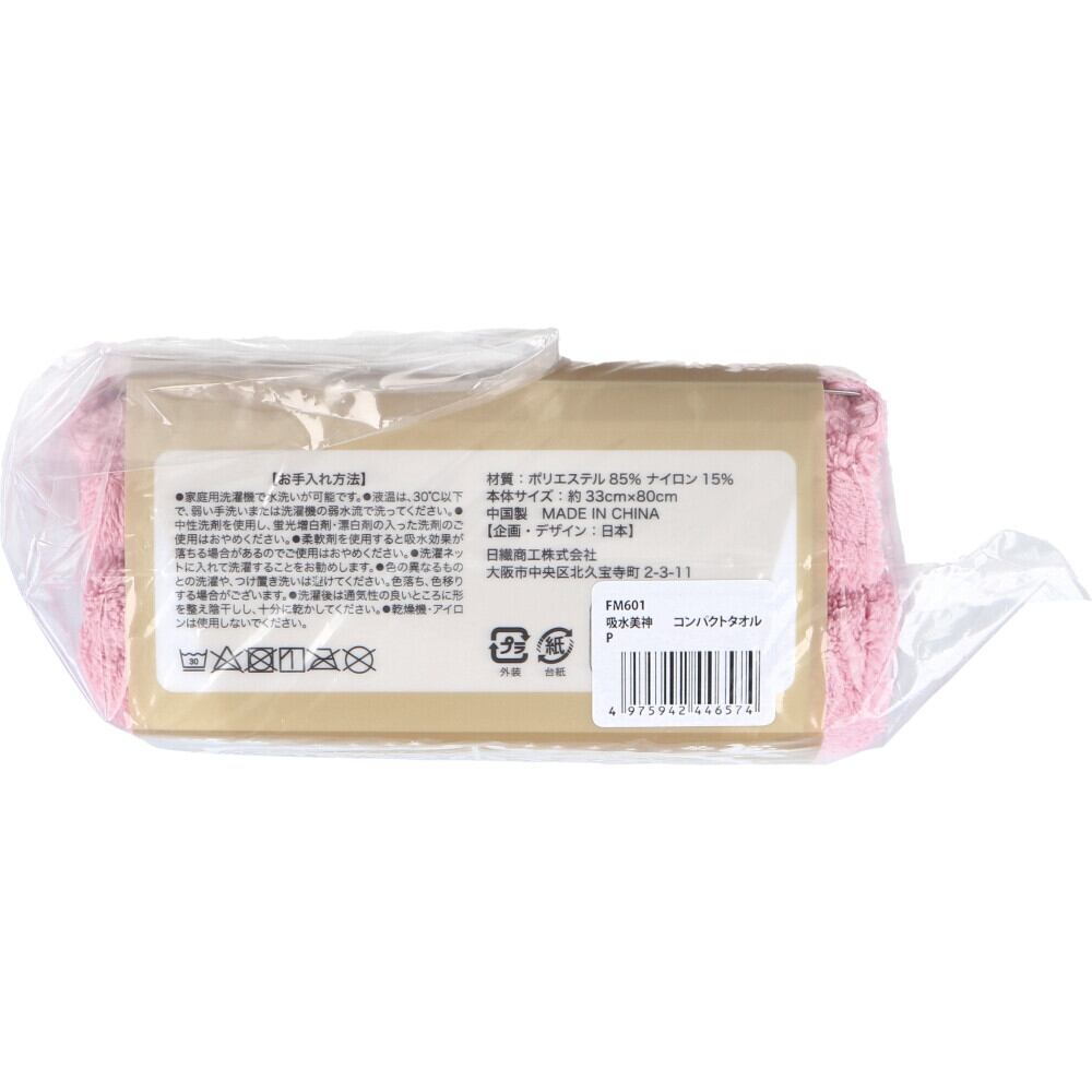 フワモコマルシェ 吸水美神 キュウスイビジン コンパクトタオル 約33×80cm ピンク 1枚入