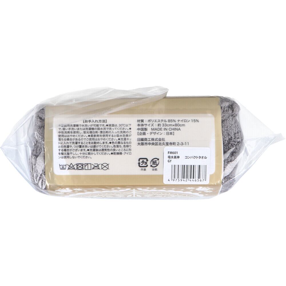 フワモコマルシェ 吸水美神 キュウスイビジン コンパクトタオル 約33×80cm グレー 1枚入