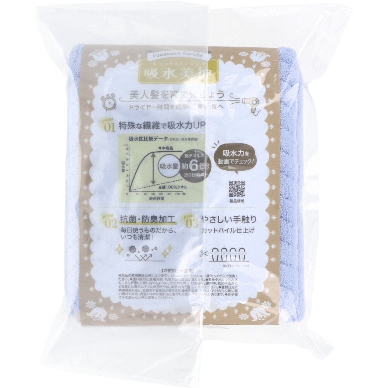 超極細繊維で洗髪後の水分をすばやく吸水!