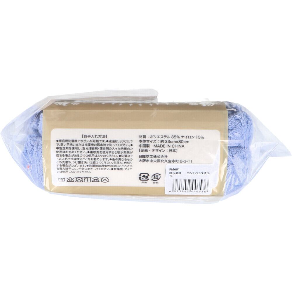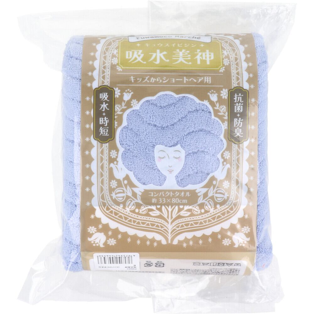 フワモコマルシェ 吸水美神 キュウスイビジン コンパクトタオル 約33×80cm ブルー 1枚入