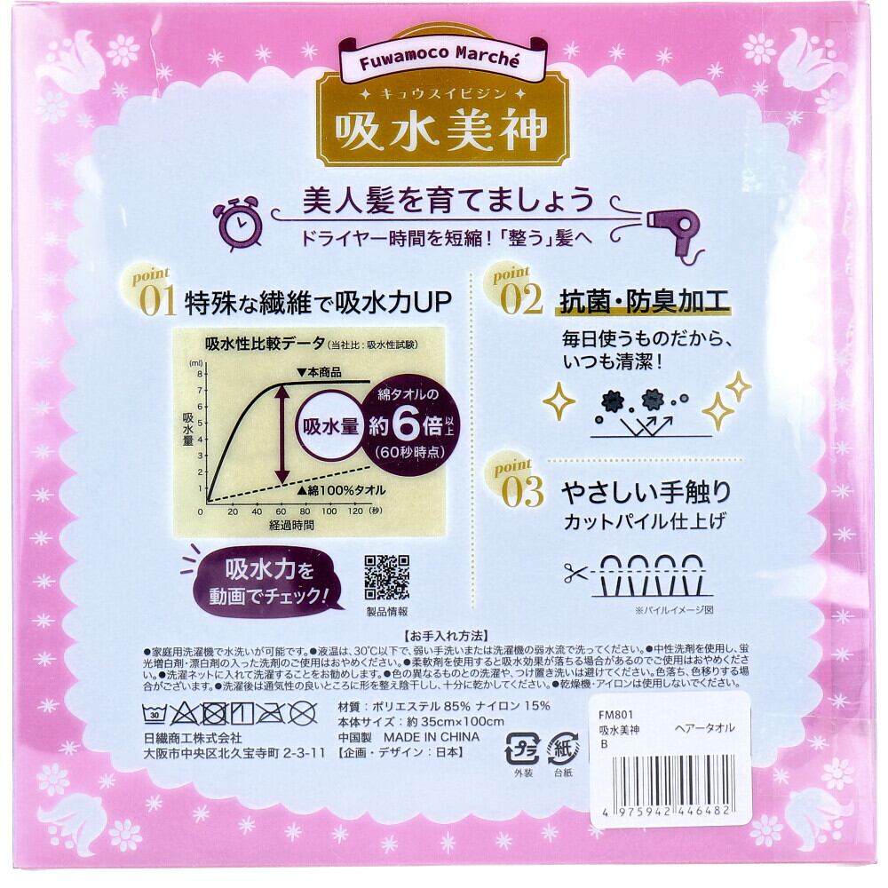 超極細繊維で洗髪後の水分をすばやく吸水!