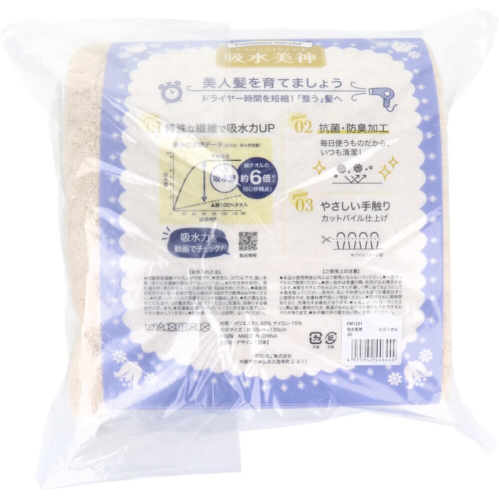 フワモコマルシェ 吸水美神 キュウスイビジン 全身タオル 約55×120cm ベージュ 1枚入