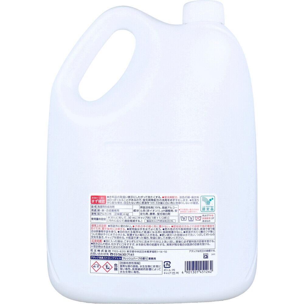 業務用 アタック 消臭ストロングジェル 洗たく用洗剤 4kg