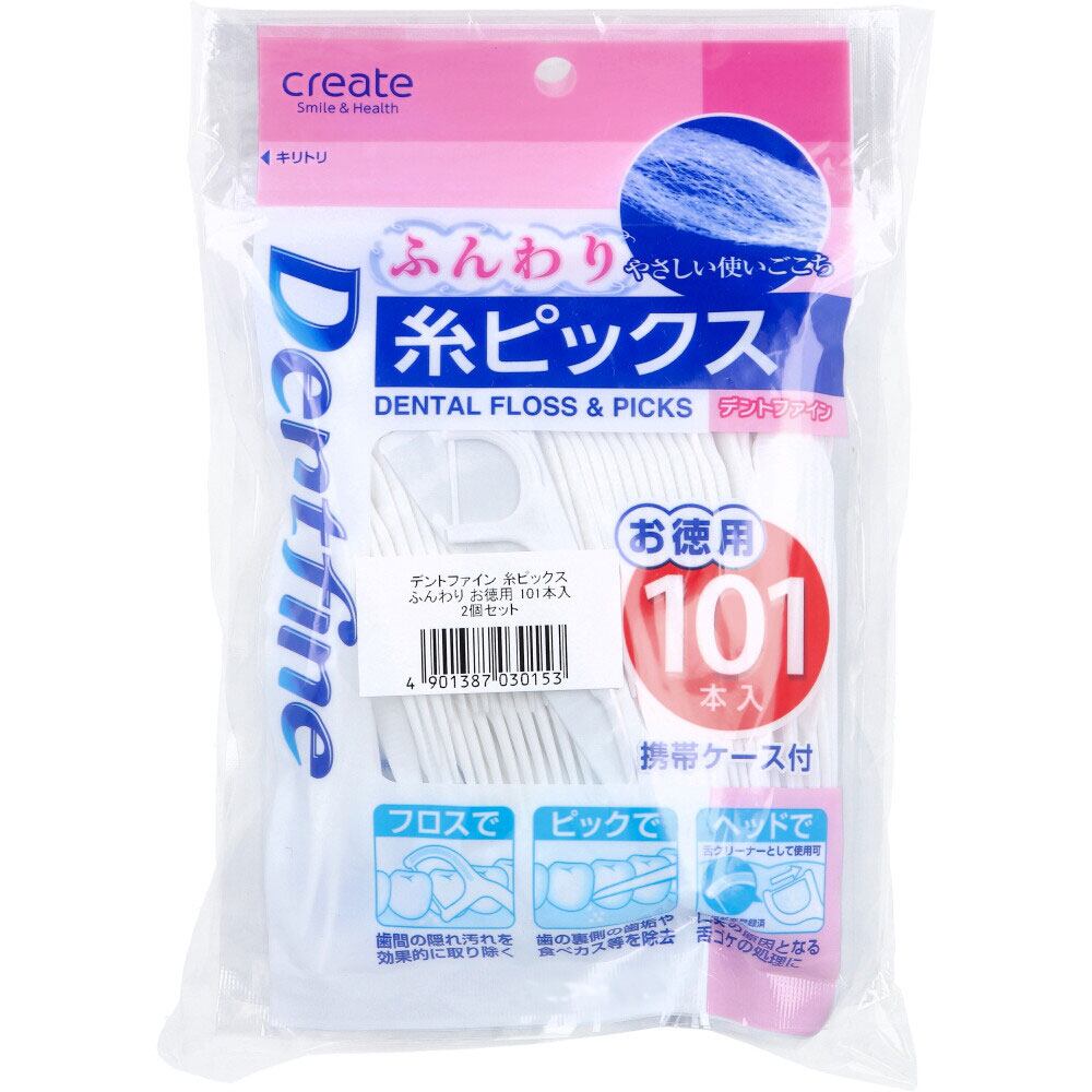 デントファイン 糸ピックス ふんわり 携帯ケース付 お徳用 101本入×2個セット