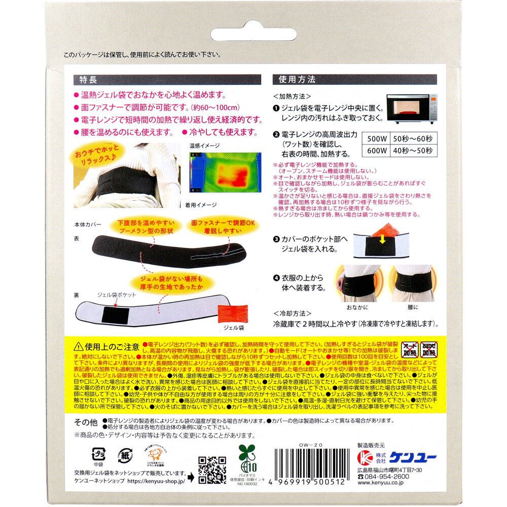 ●温熱ジェル袋でおなかを心地よく温めます。