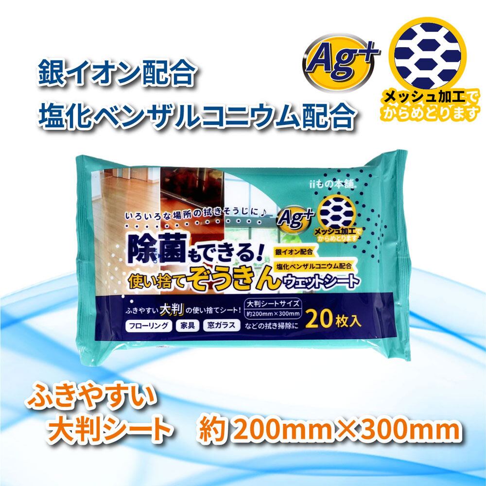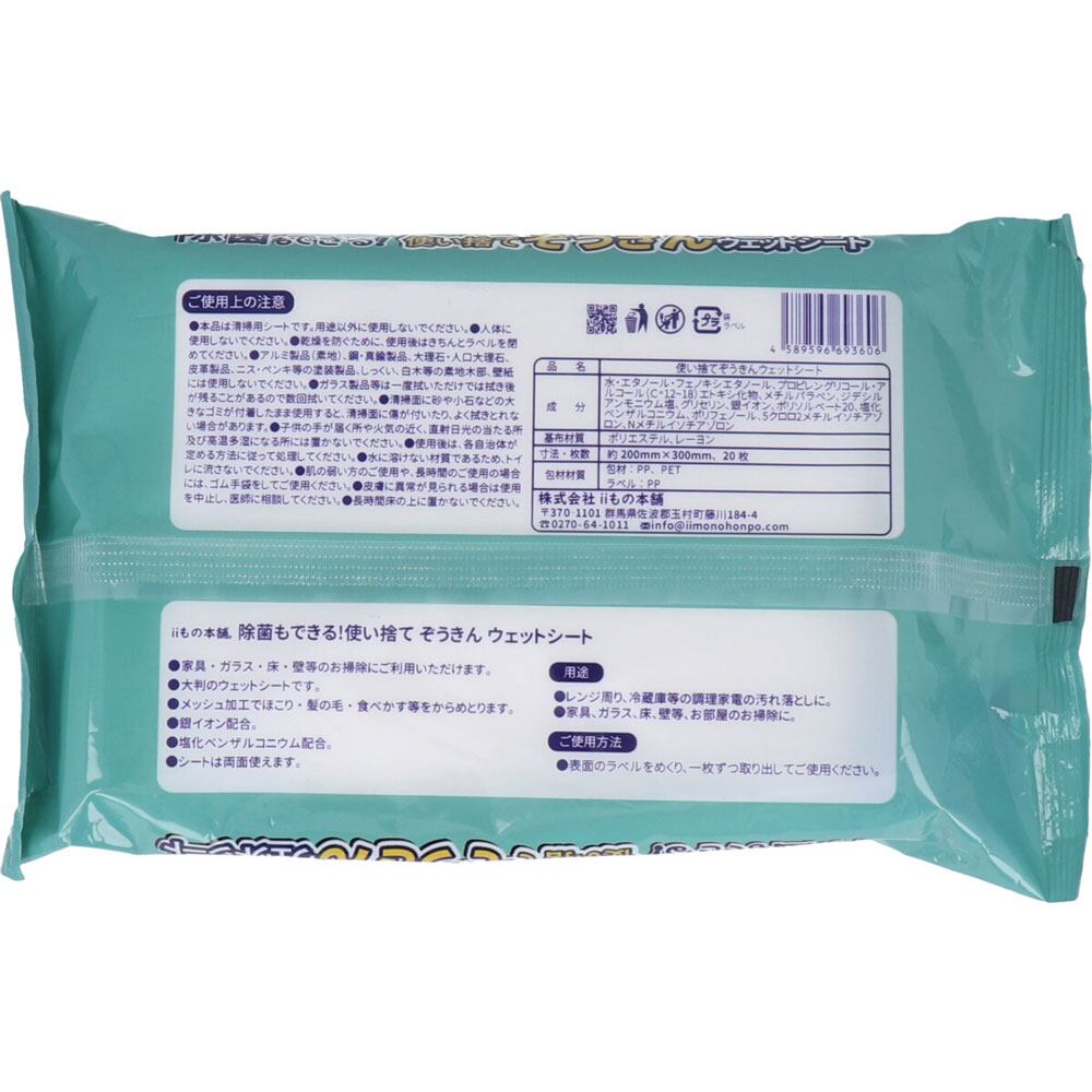 除菌もできる! 使い捨てぞうきん ウェットシート 20枚入×6個セット