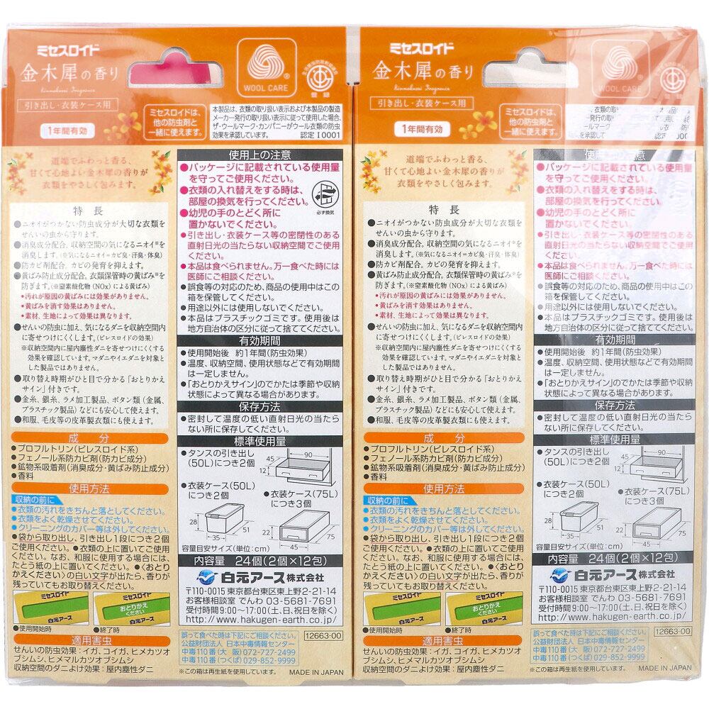 ミセスロイド 防虫剤 引き出し・衣装ケース用 1年間有効 金木犀の香り 24個入×2個パック