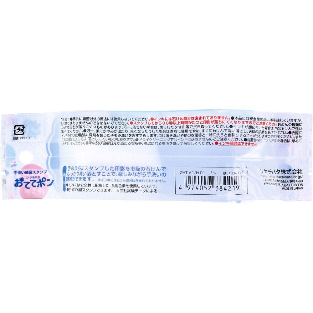 手洗い練習スタンプ おててポン ブルー ばいきん01