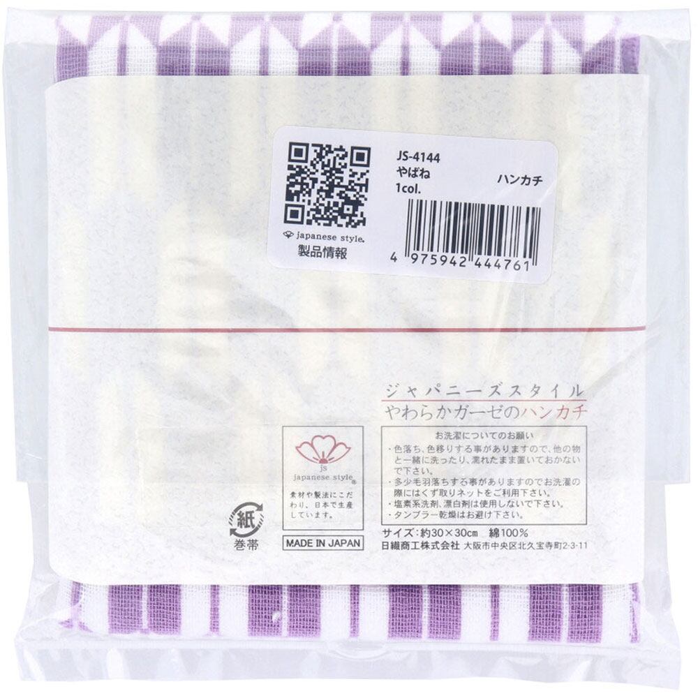 ジャパニーズスタイル 小紋 やわらかガーゼのハンカチ やばね 約30×30cm JS-4144 1枚入