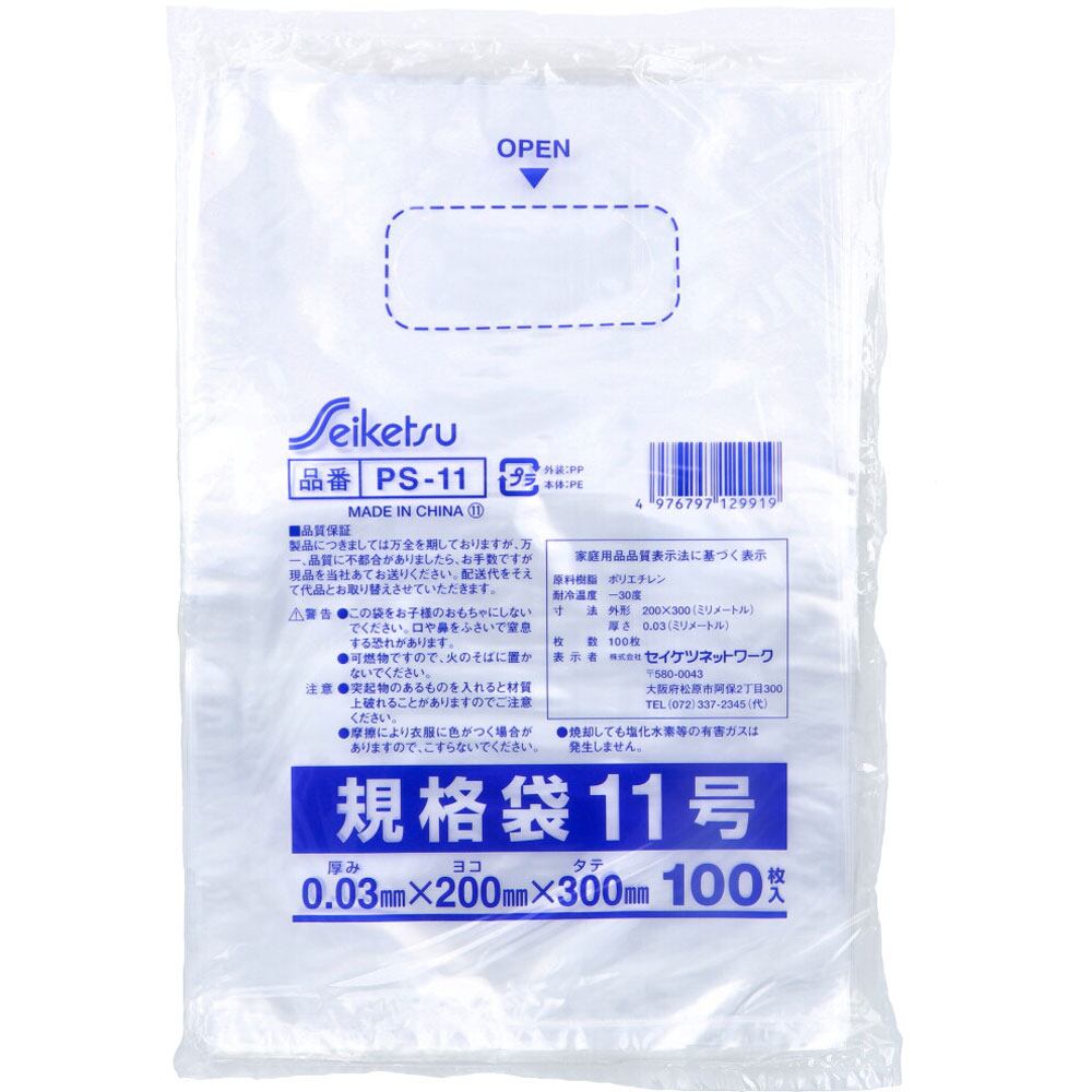 PS-11 規格袋 透明 11号 0.03×200×300mm 100枚入