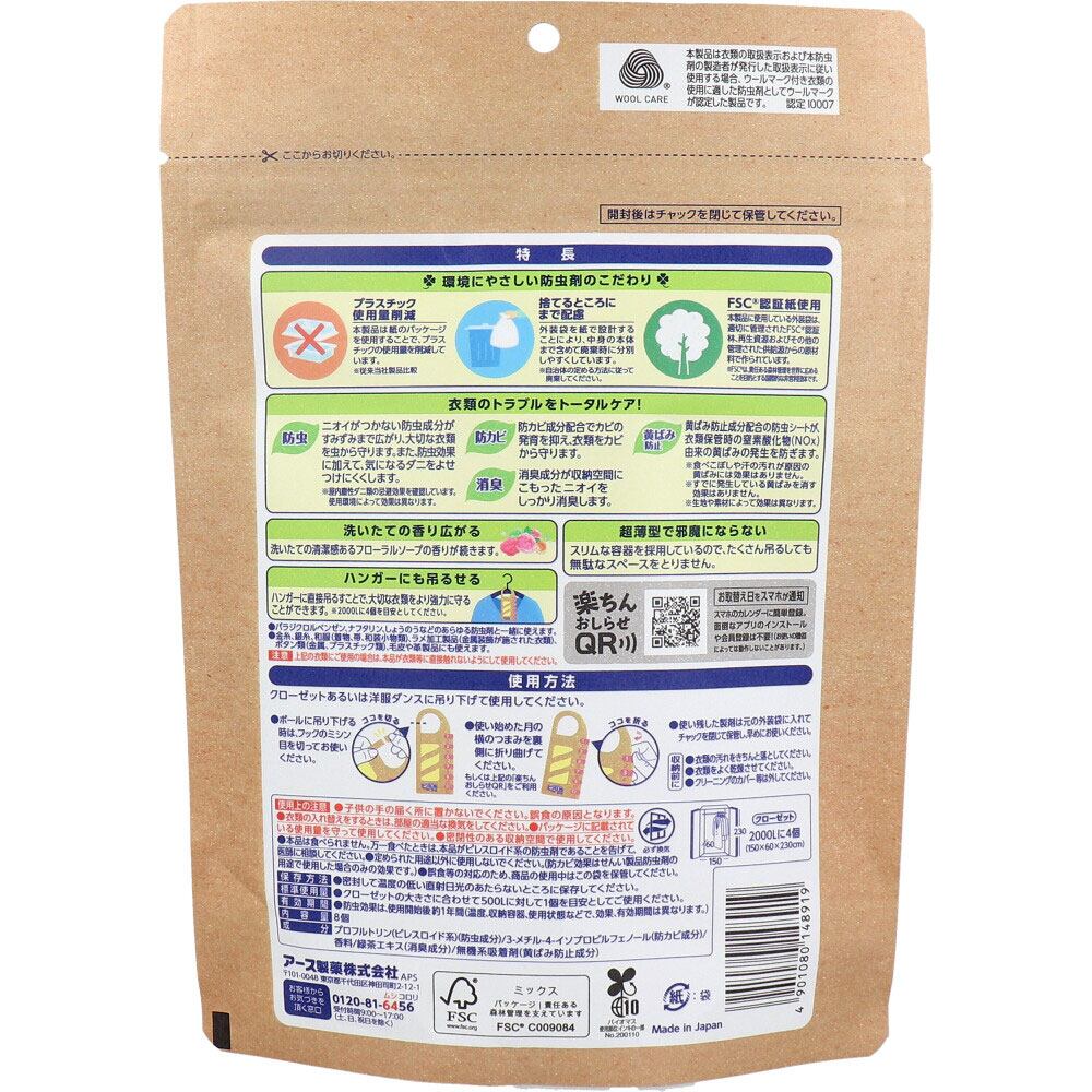 ●ハンガーにも吊るせる:ハンガーに直接吊るすことで、大切な衣類をより強力に守ることができます。※2000Lに4個を目安としてください。