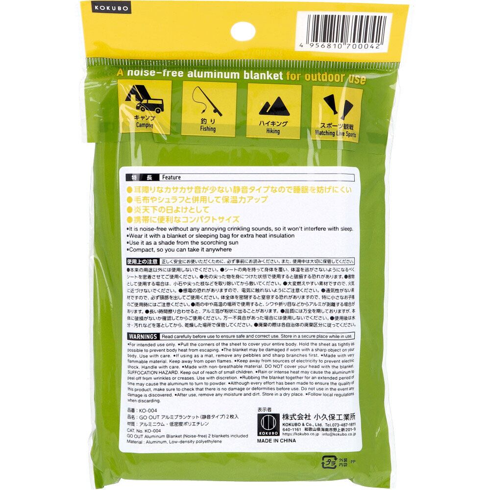 GO OUT アルミブランケット 静音タイプ 一人用サイズ 2枚入