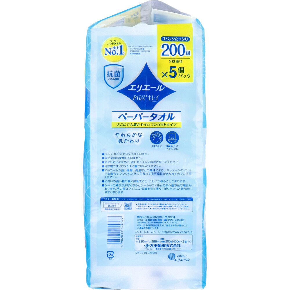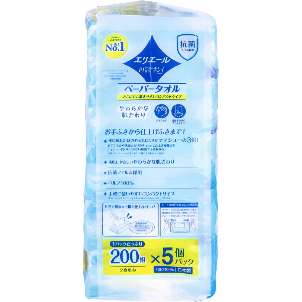 エリエール Plus+キレイ ペーパータオル コンパクト 200組(400枚)×5個パック