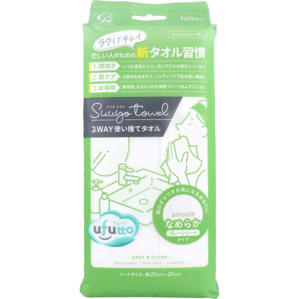 うふっと スウヨタオル 3WAY使い捨てタオル なめらかプレーンシート 120枚入