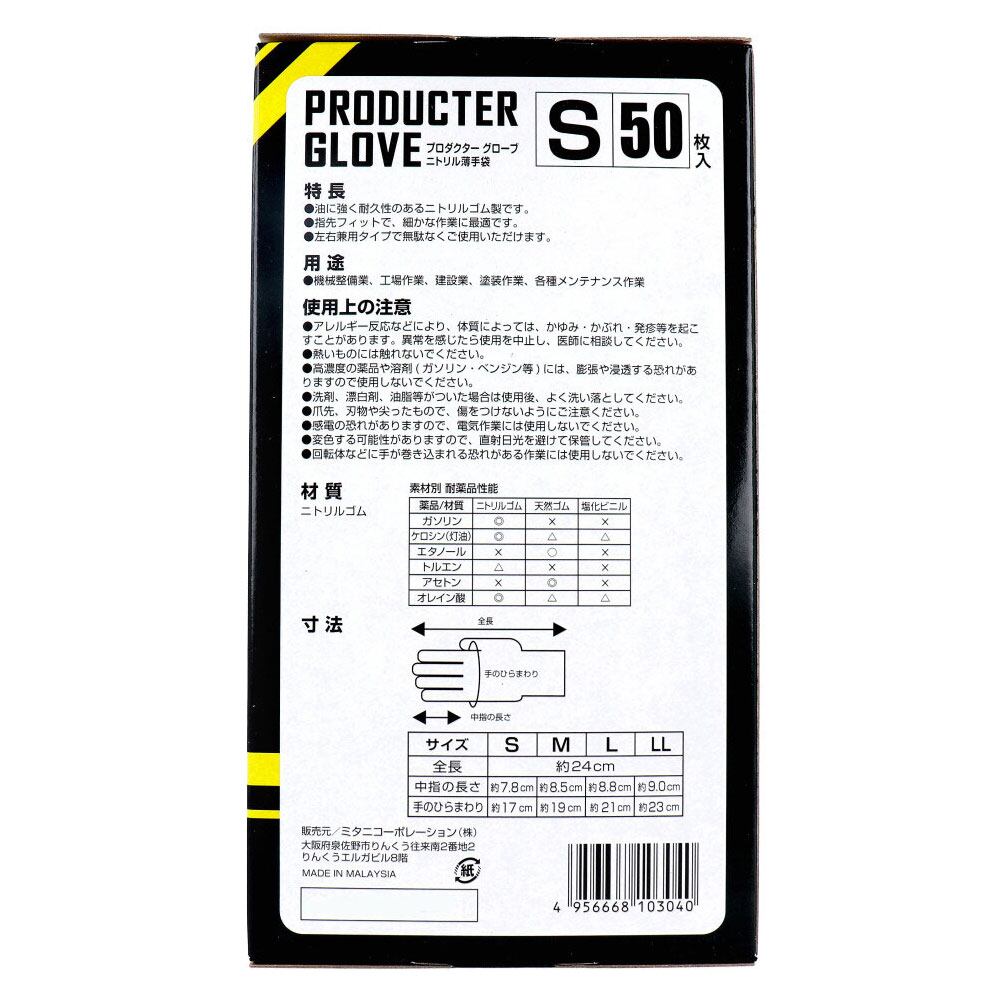 【業務用】プロダクター グローブ ニトリル薄手袋 粉なし 左右両用 ブラック S 50枚入