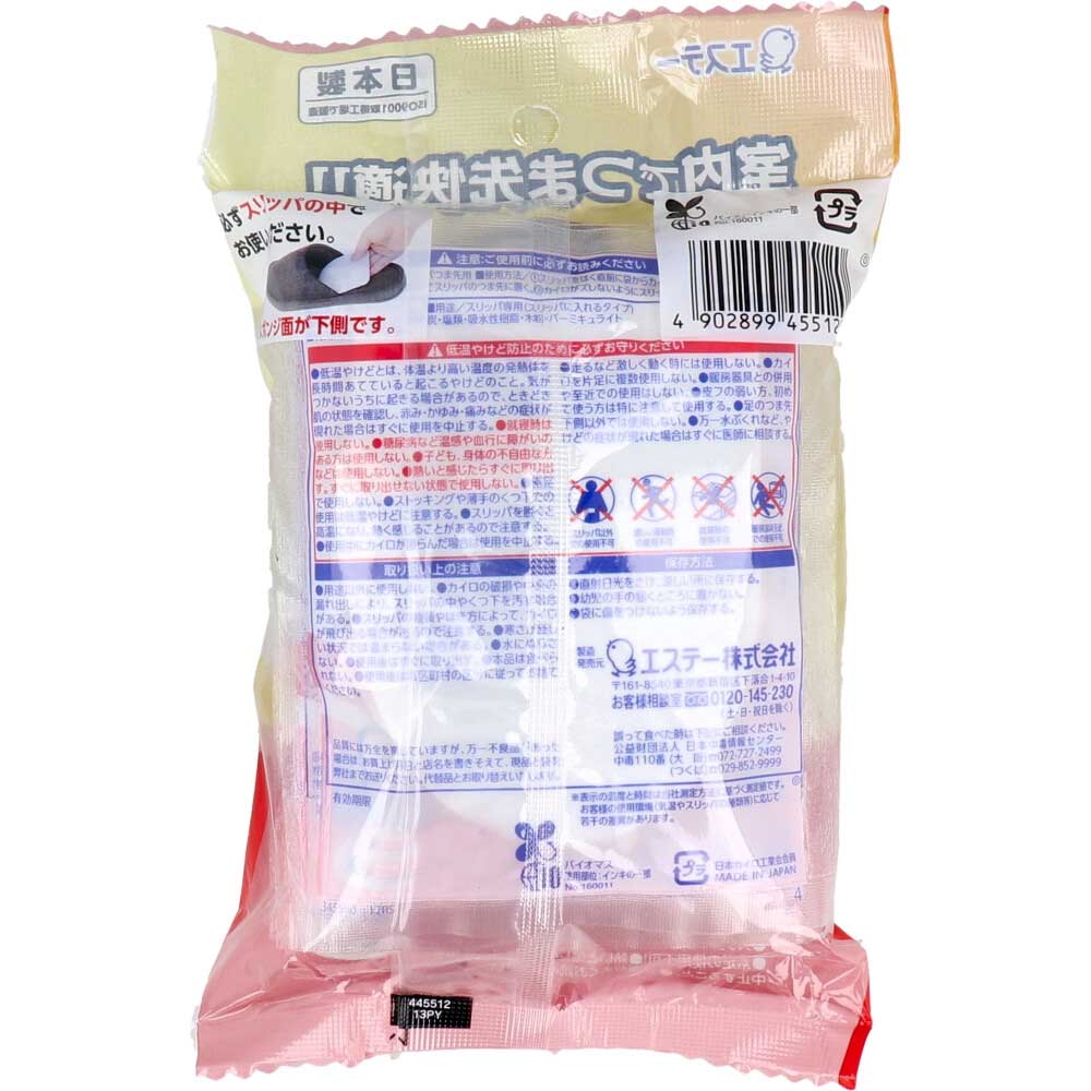 ・スリッパの種類やはき方によって、カイロが飛び出る場合があるので注意する。