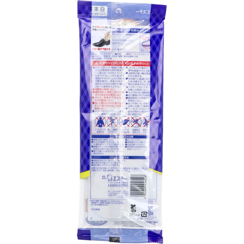 ・カイロの破損や中身の漏れ出しにより、靴の中やくつ下を汚す場合がある。