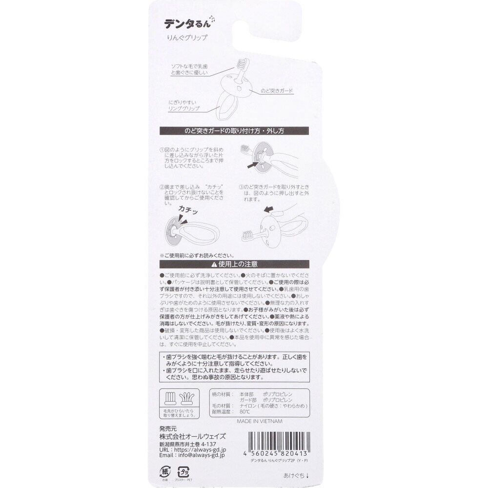デンタるん りんぐグリップ 6ヵ月から イエロー+ピンク 2本入