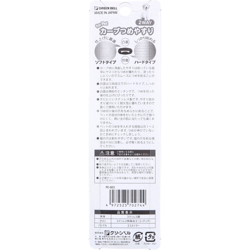 ペット用 カーブつめやすり 2WAY シニア猫&全犬種 PE-003