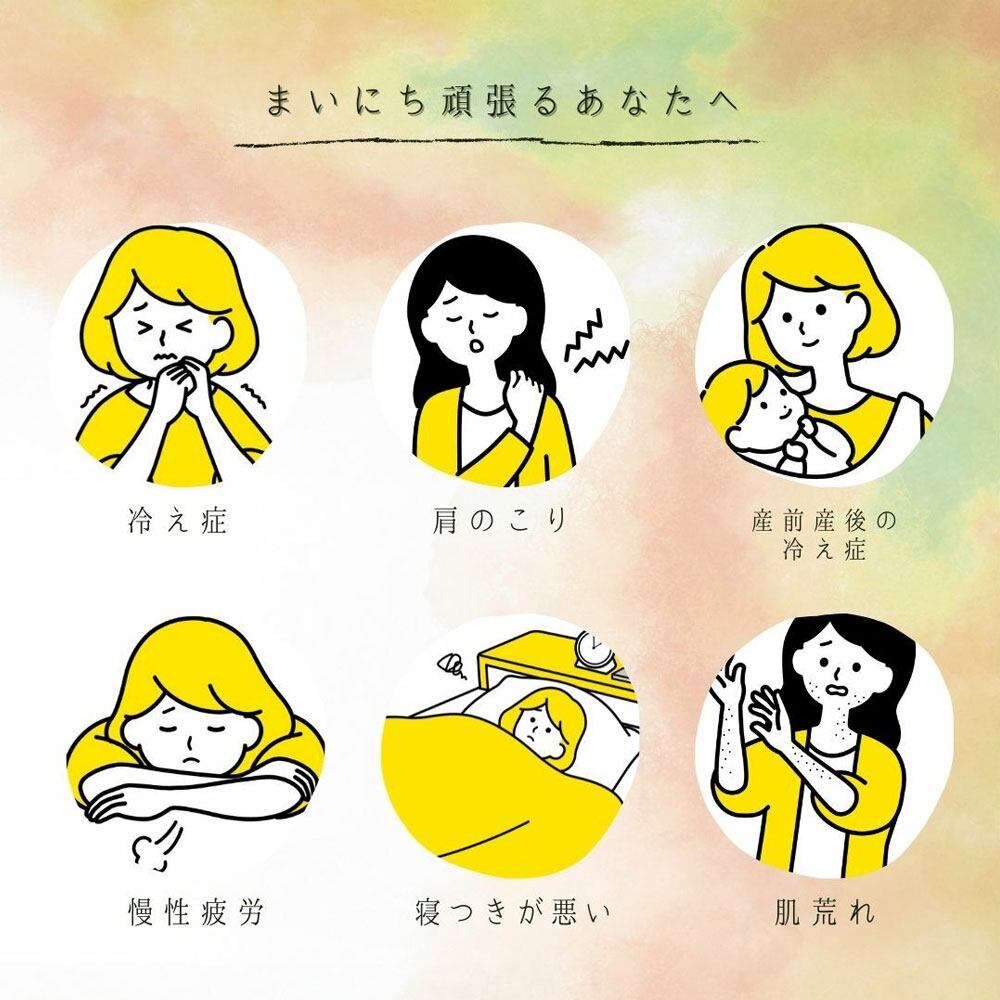 冷え症・疲労回復・肩のこり・腰痛・湿疹・あせも・荒れ性・産前産後の冷え症・くじき・痔・ひび・あかぎれ・しもやけ・神経痛・リウマチ