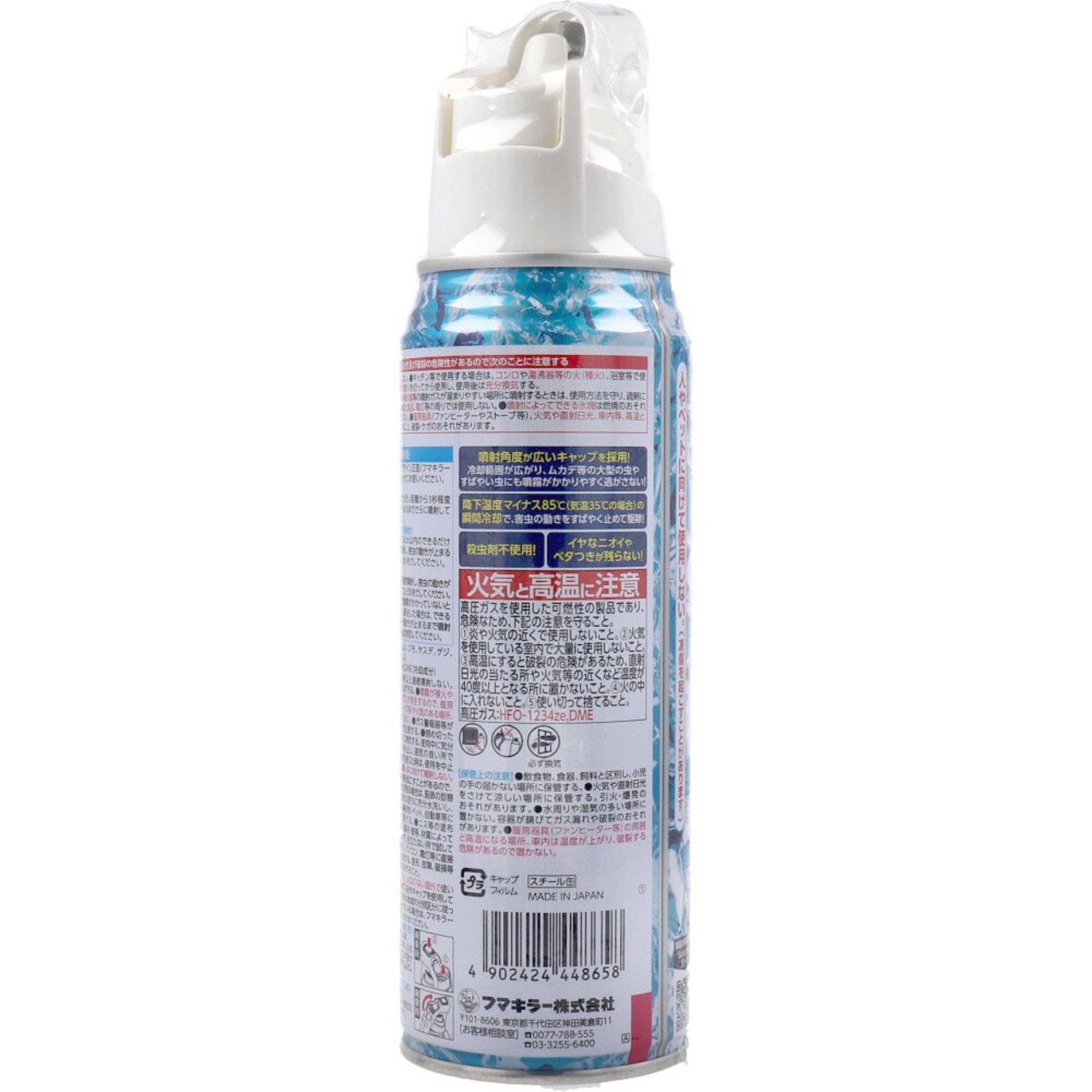 しっかり凍らせるため50センチ以内のできるだけ近い距離から5秒程度噴射し、害虫の動きが止まるまでさらに噴射してとどめをさしてください。