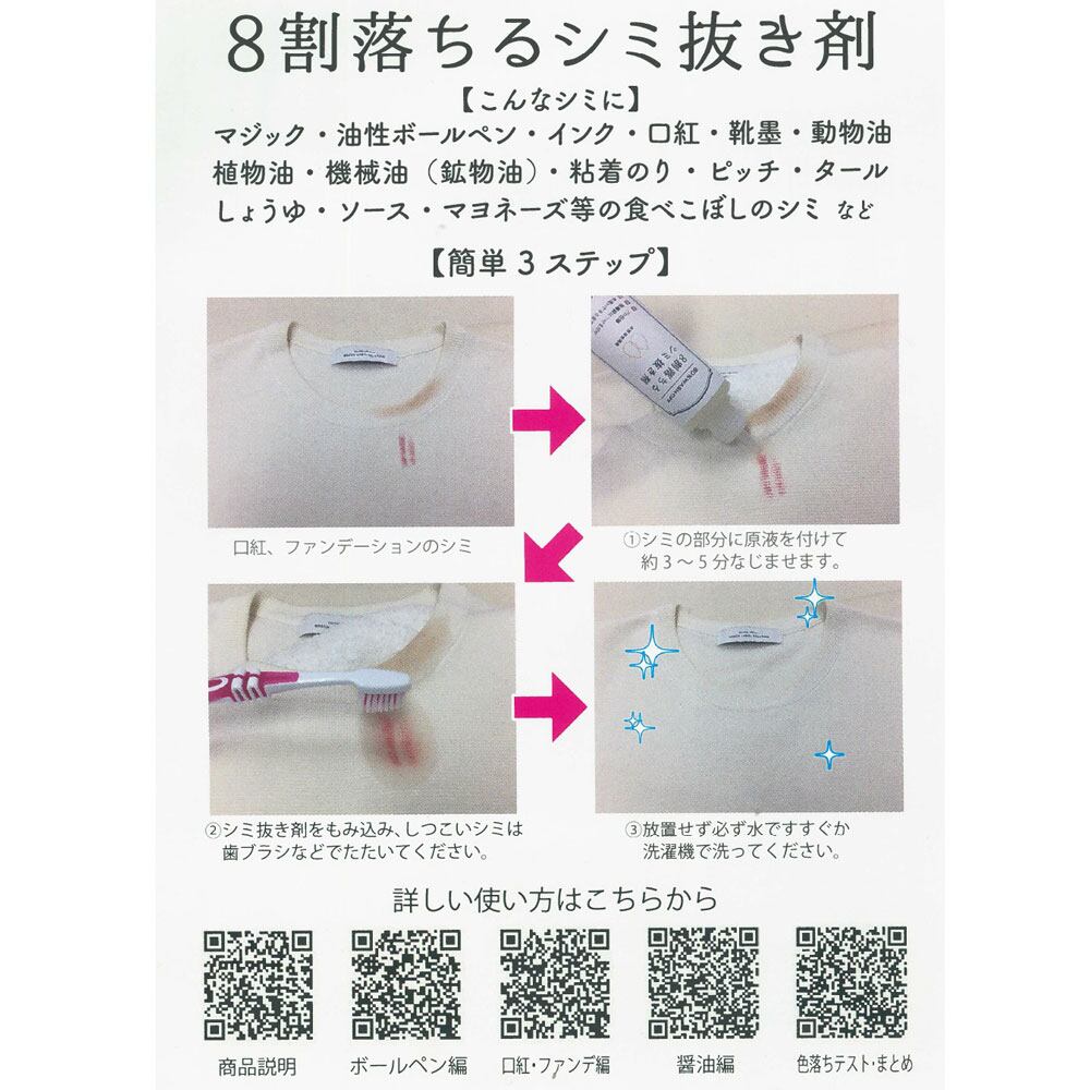 原液をシミの部分に直接付け、3〜5分後に洗濯してください。