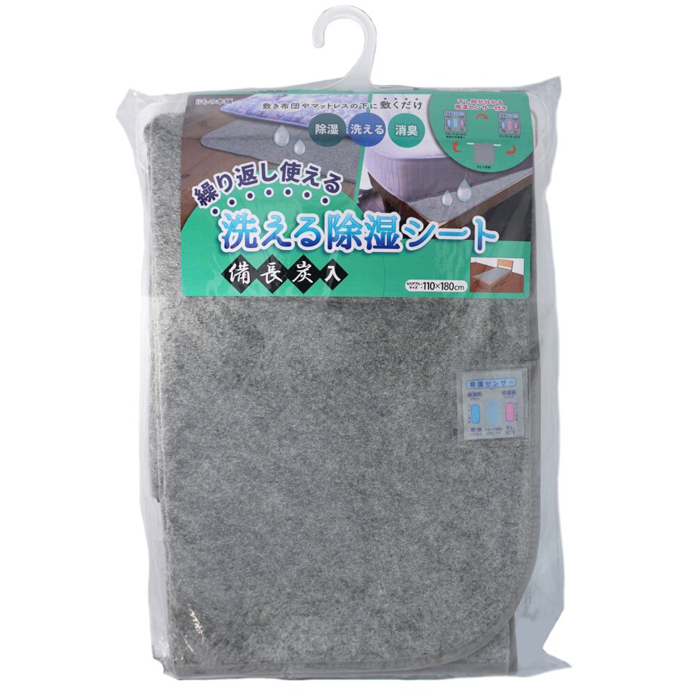 洗える除湿シート 備長炭入 セミダブルサイズ 110×180cm グレー