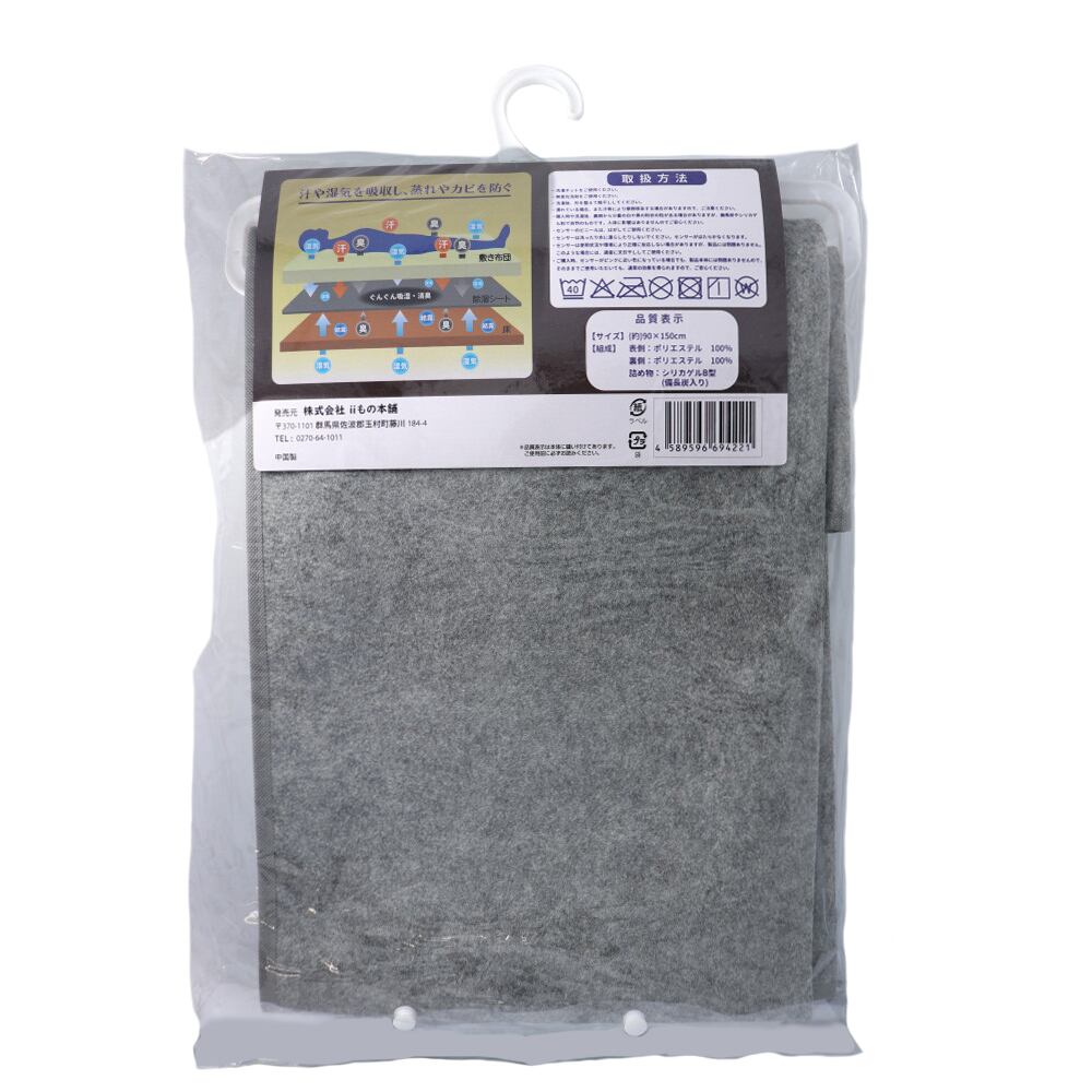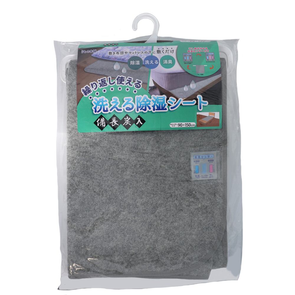 洗える除湿シート 備長炭入 セミシングルサイズ 90×150cm グレー
