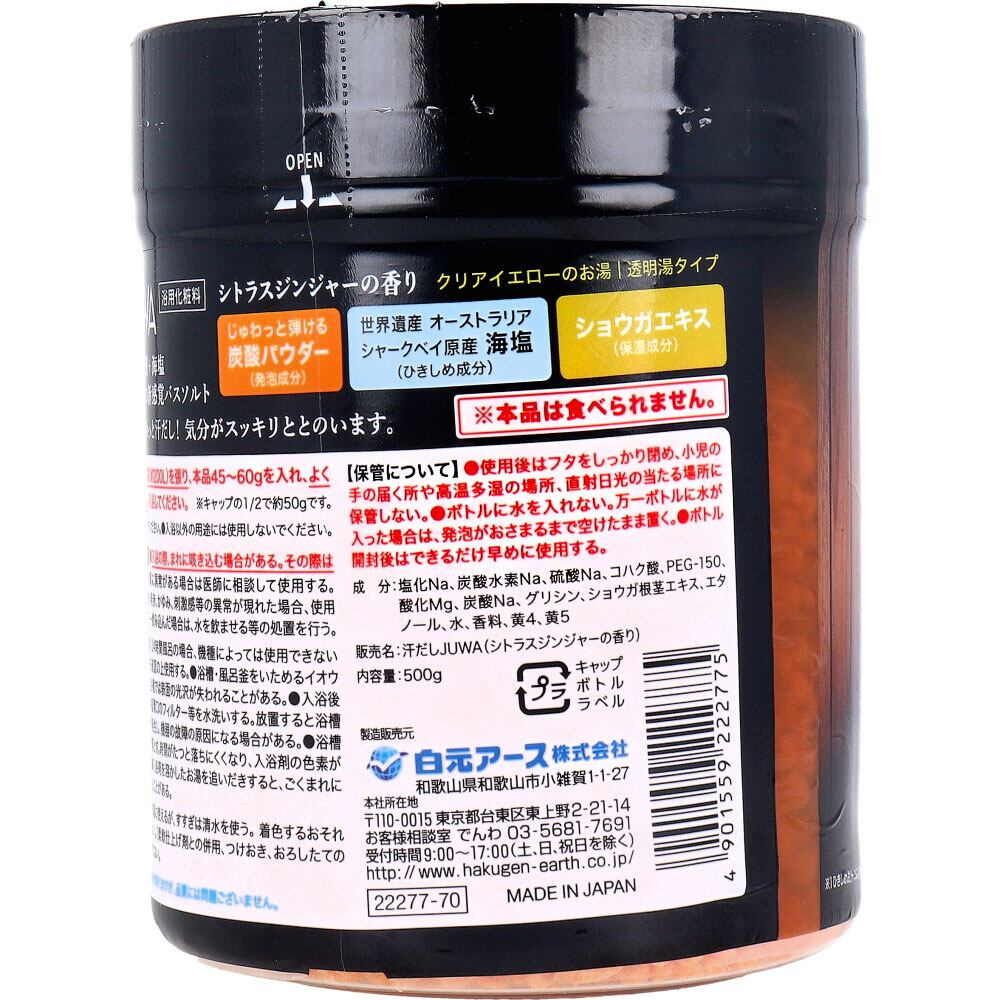 汗だし JUWA 炭酸バスソルト シトラスジンジャーの香り 500g