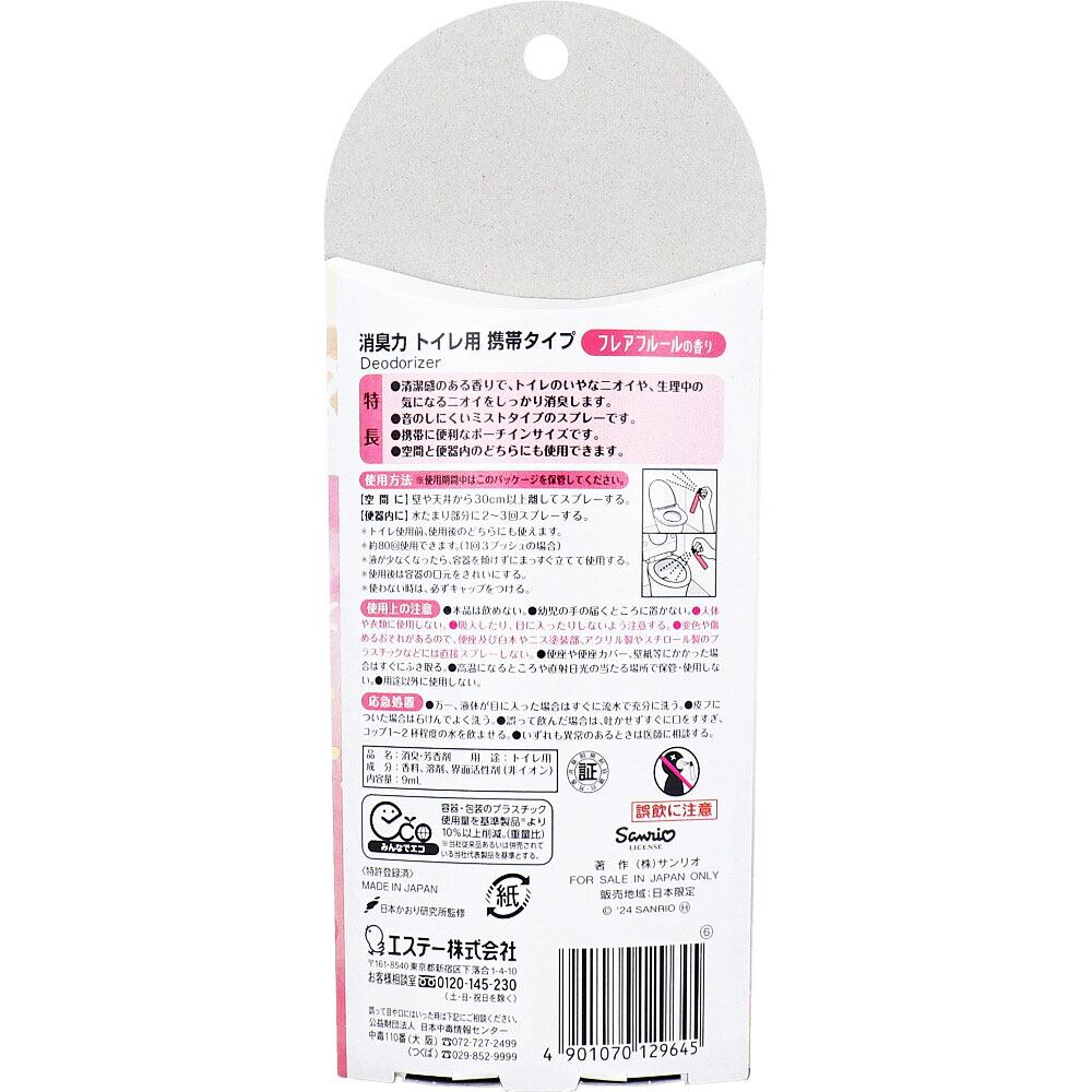 消臭力 トイレ用 携帯タイプ トイレのフレグランスミスト COSOTTO(コソット) フレアフルール 9mL
