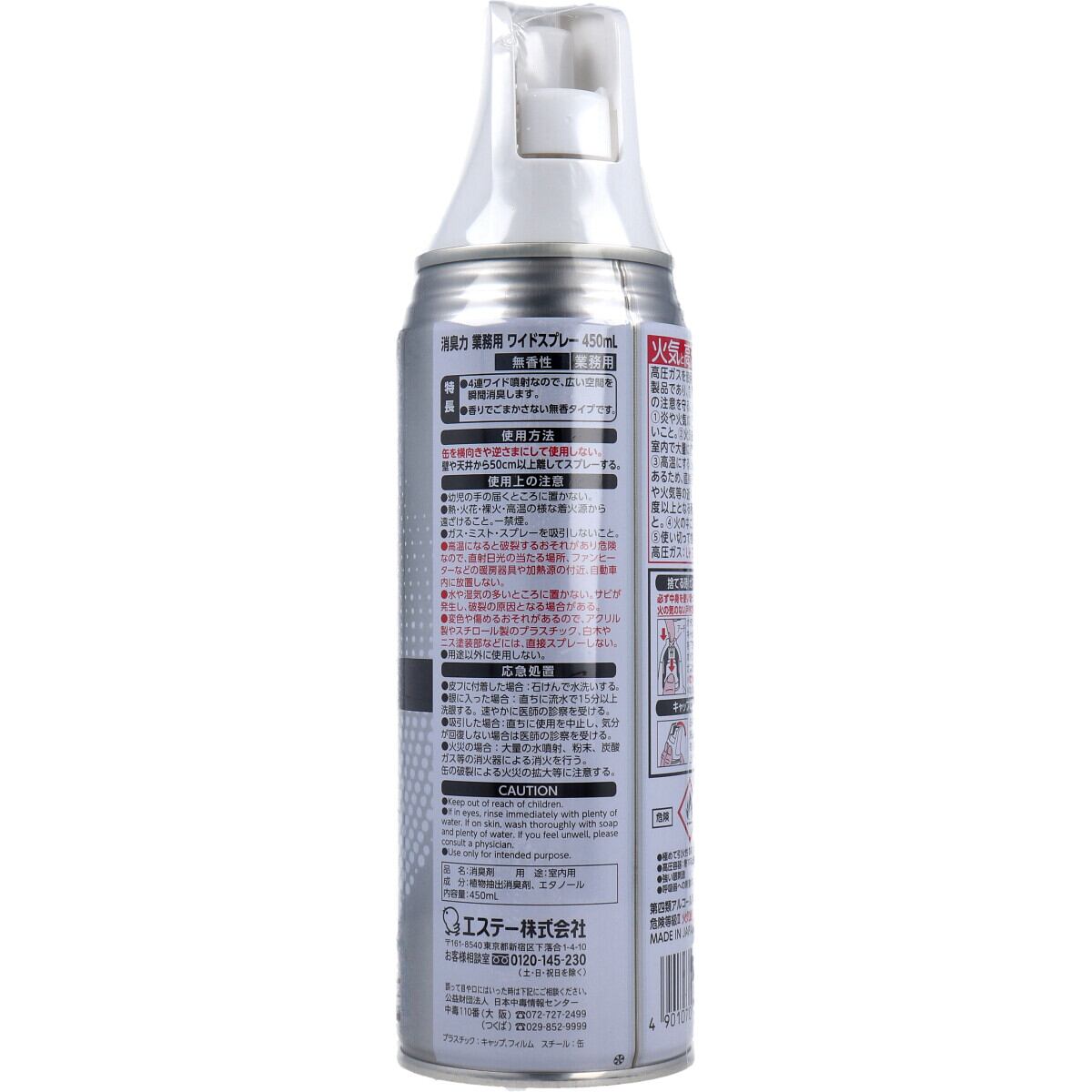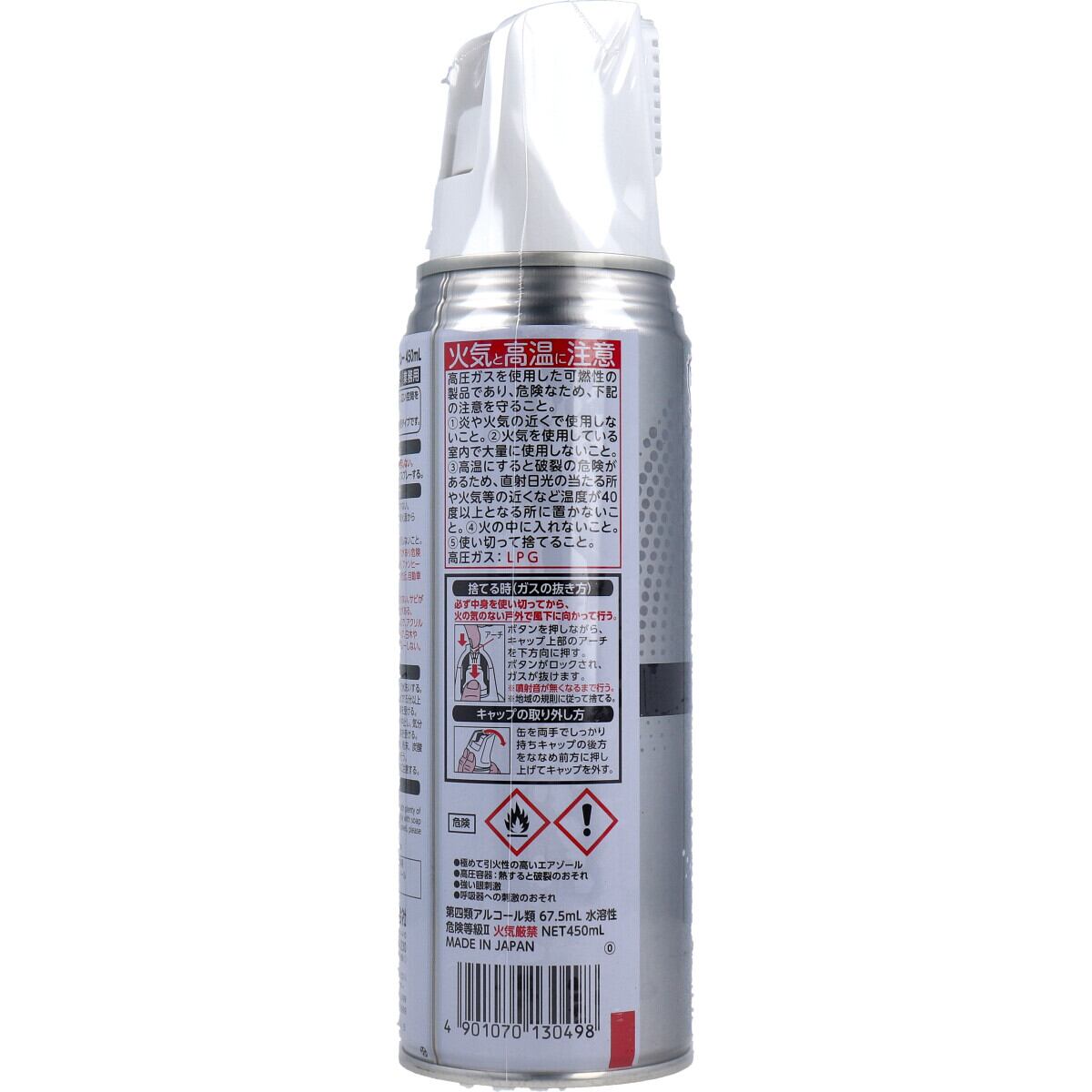 ・缶を両手でしっかり持ちキャップの後方をななめ前方に押し上げてキャップを外す。個装サイズ:65X237X65mm